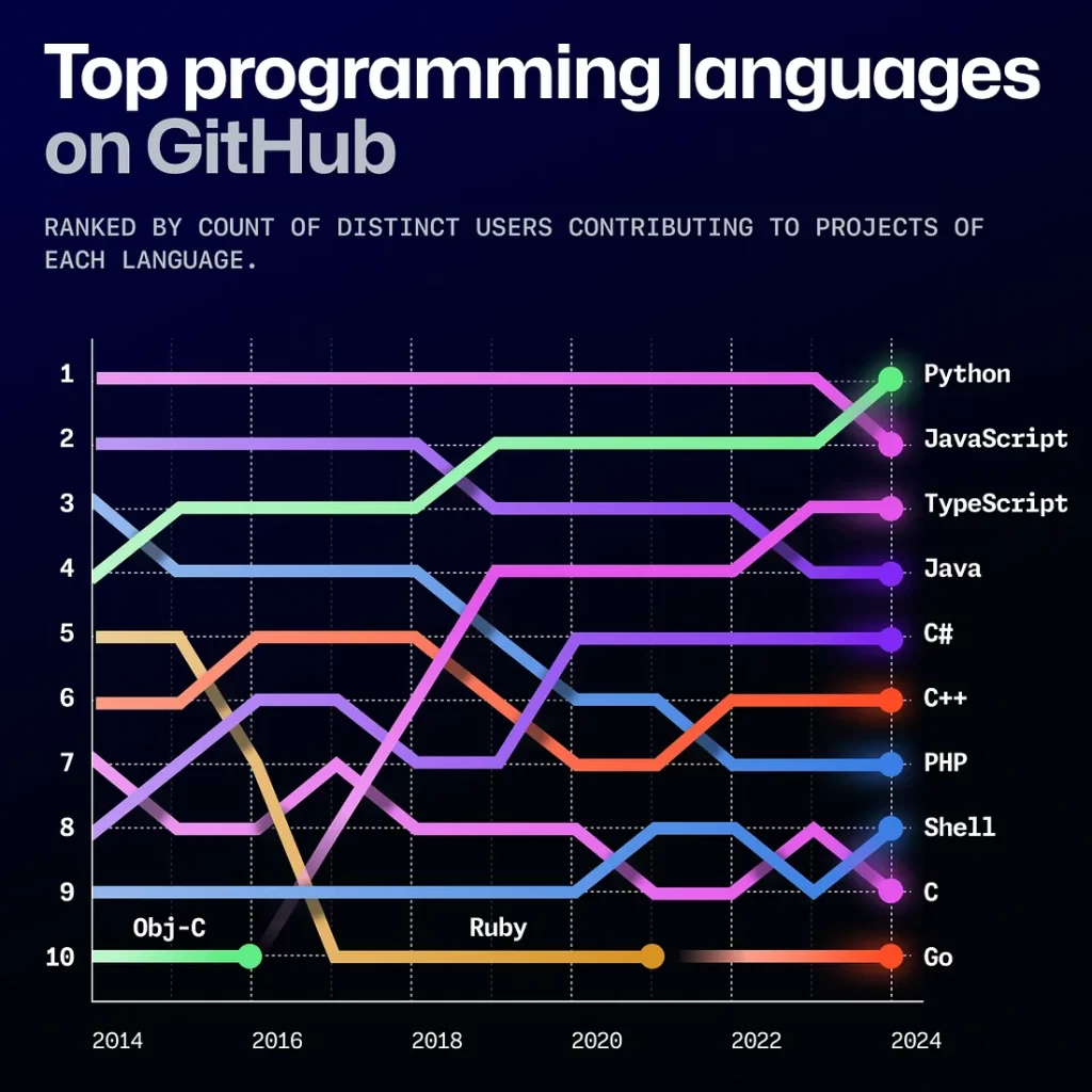 Los datos de GitHub muestran que 2025 será un año clave para quienes dominen Python, TypeScript, Rust y la programación asistida por IA.